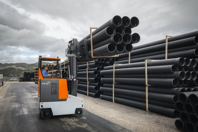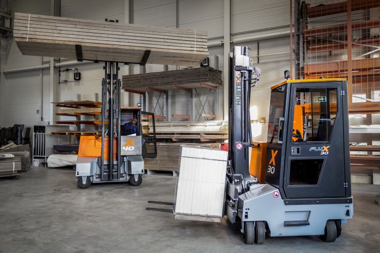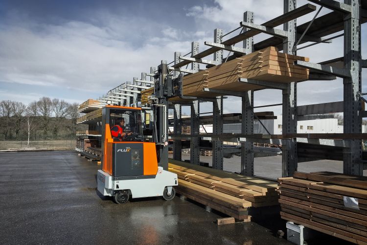 A new generation of omni directional counterbalance forklift trucks for combined indoor and outdoor use. The vehicle is designed for handling pallets and long goods in equal parts. The intelligent vehicle control, in combination with state-of-the-art electric motors and the patented HX steering system, makes the truck efficient, easy to use and unbeatable in its class. Special features of the FluX include its compact frame length and the fixed lift mast. This makes the forklift ideally suited for loading and unloading trucks. The cab has been designed to ensure maximum ergonomics and the visibility is enhanced by more compact lift masts and fork carriages.