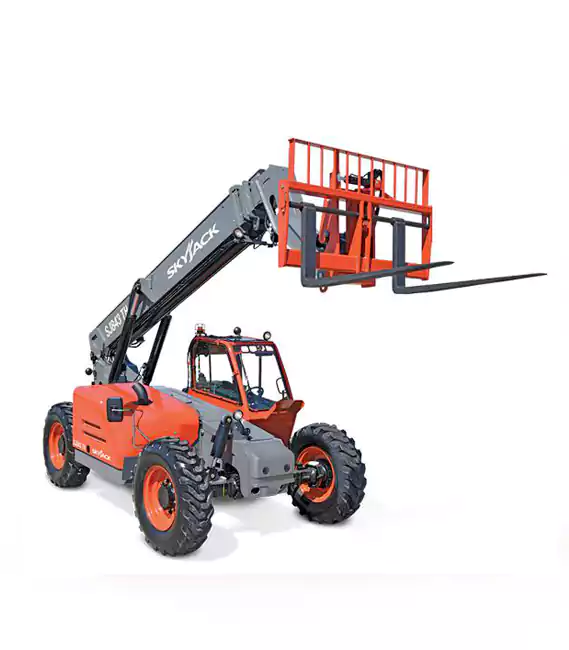 Skyjack telehandlers extend our principle of simple reliability into material handling equipment. Our TH series is designed with all major service points easily accessible, limiting downtime and increasing our customers’ utilization. With a variety of proprietary features, Skyjack’s telehandlers feature an innovative cab design that allows fleet operators to easily convert between open and enclosed cabs with simple hand tools, providing increased flexibility for fleet movement and fast response to customer demands. Easily sourced flat glass panels with no custom curved profiles and a bolt-on/bolt-off window retention system ensures minimal downtime and incurred costs for repairing damaged glass in the field. An axle-based drive system with an operator controlled locking differential on the rear axle and limited slip differential on the front axle. This drive system has been proven as durable, low maintenance, and capable of navigating any job site terrain.